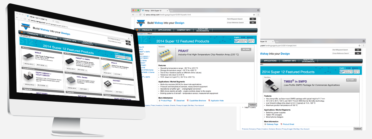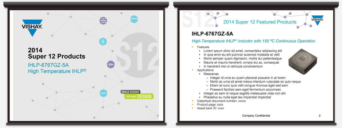 Super 12 is a yearly program that was developed to highlight 12 featured products. Over the years, the design theme throughout these brochures included the use of shapes and colors. The cover design each year consisted of different shapes. Inside, component groups were identified by two different colors. Email blasts and Word / PowerPoint templates were created to deliver product information to the sales team. I worked with MarCom Product Managers in the production of the web landing pages and marketing materials for this program.